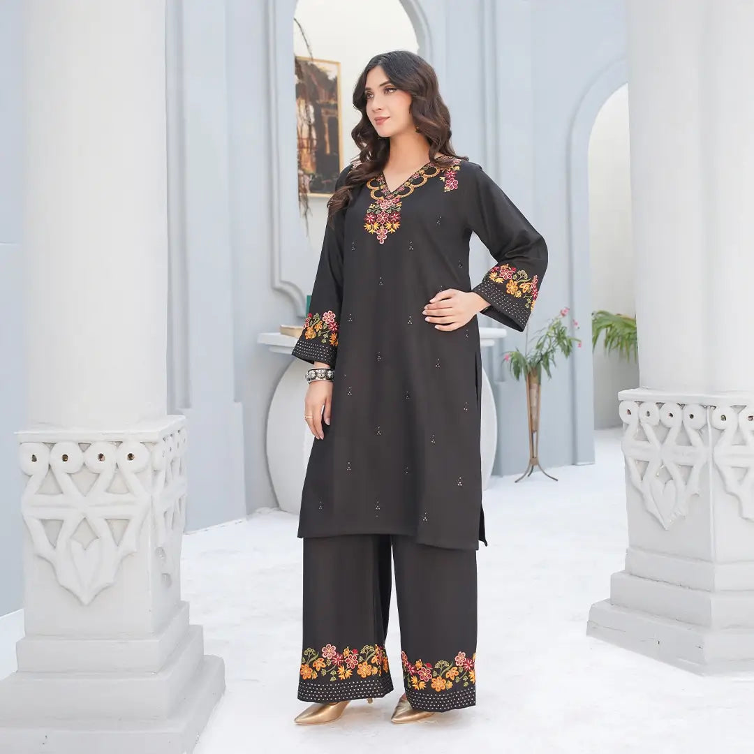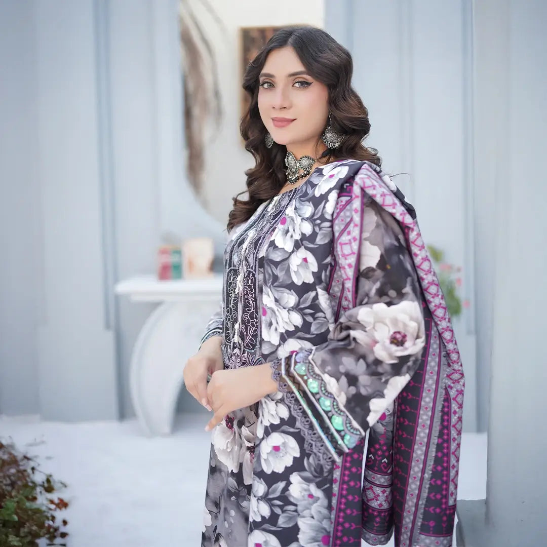 Elevate your style with this sophisticated wool 3-piece set, featuring intricate embroidery on premium wool and a beautifully printed dupatta. Durable, warm, and elegant, it’s perfect for formal occasions or refined everyday wear.
